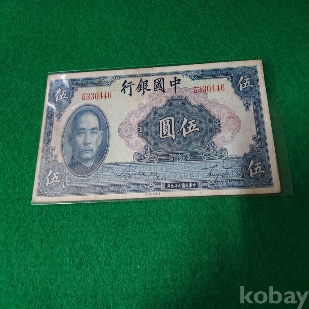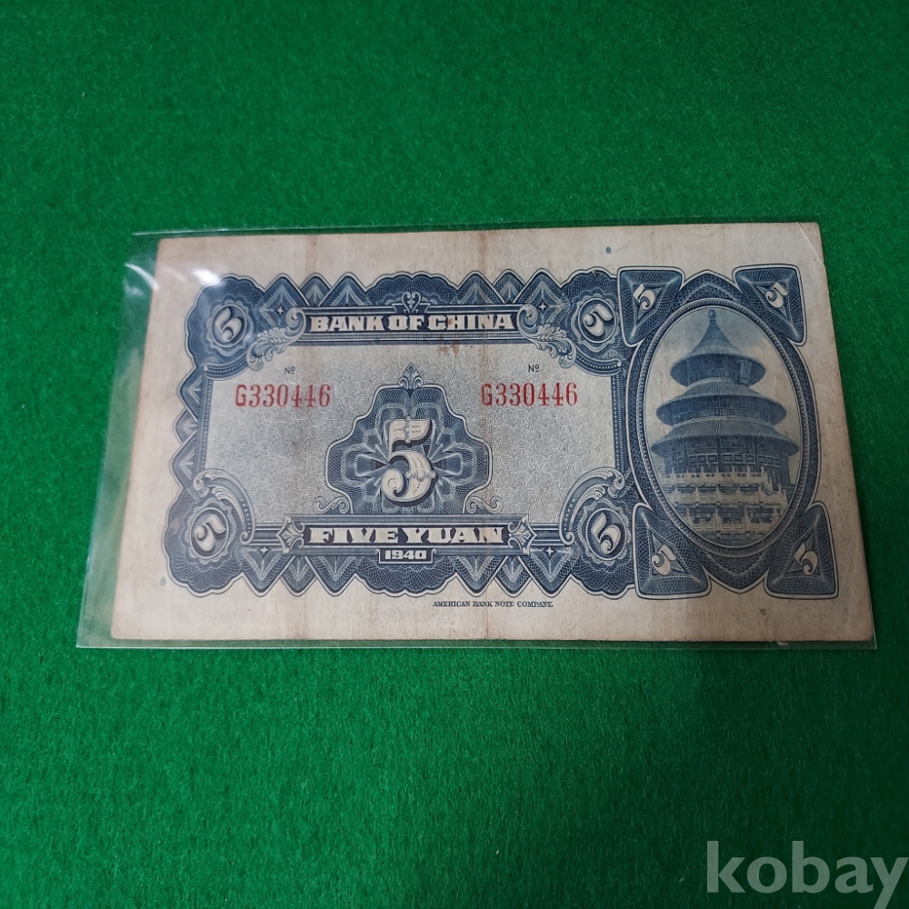 중국 1940년 중국은행 5원 사용제