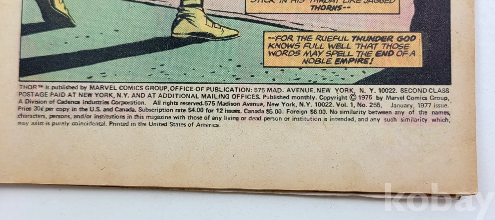 물 품 명 | the Mighty THOR / Vol.1 #255 Jan. 1977 / MARVEL COMICS GROUP / 미국 |
