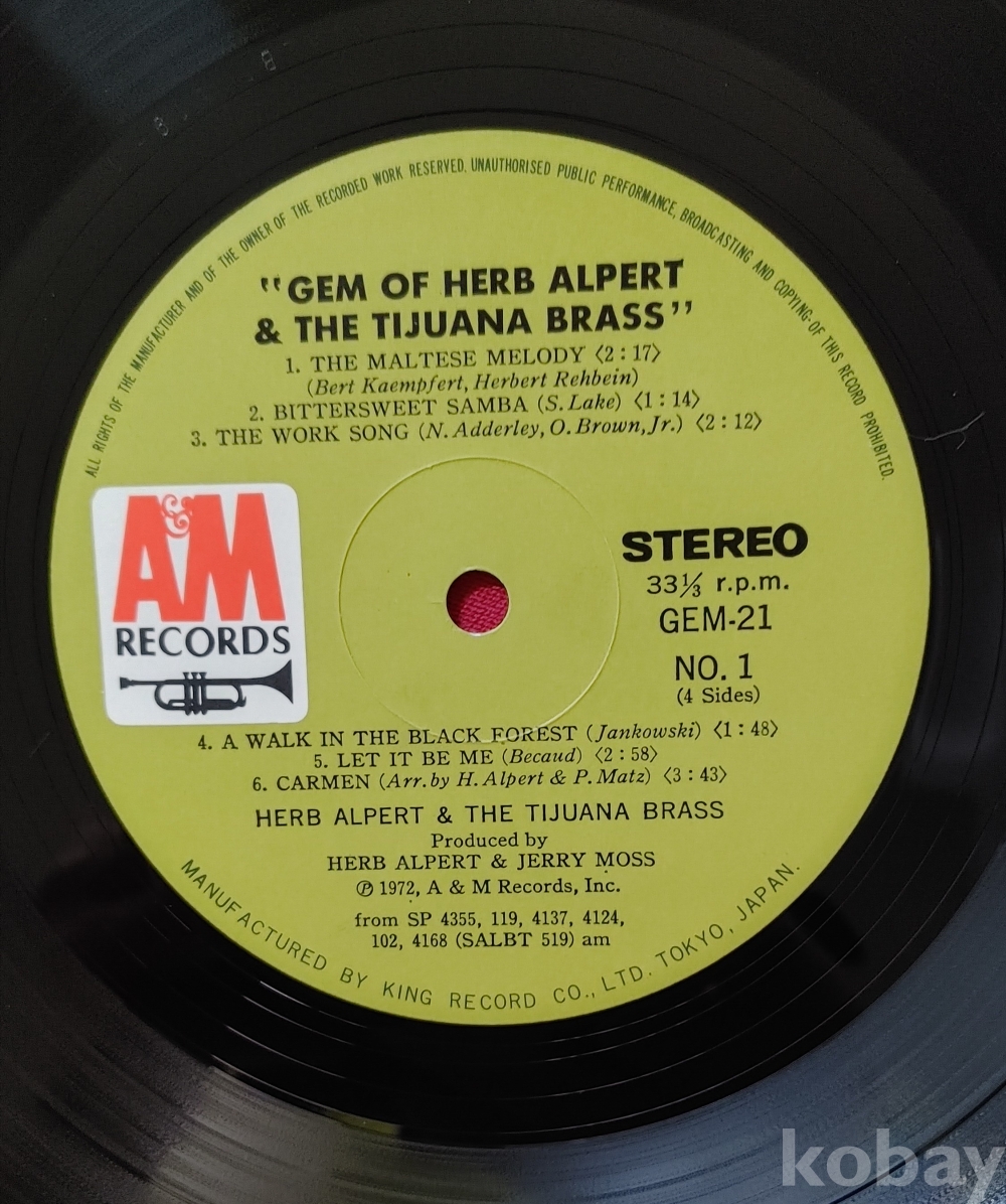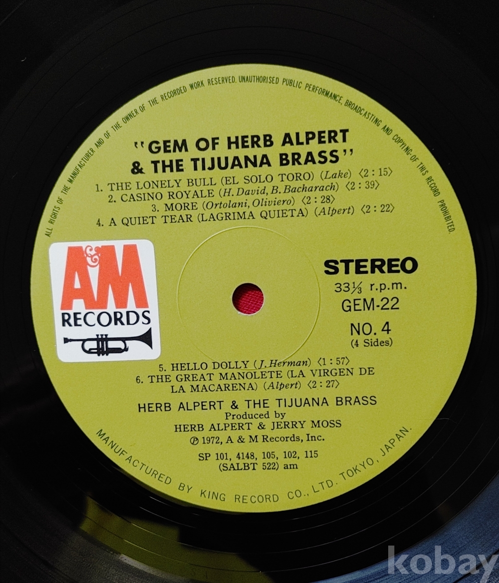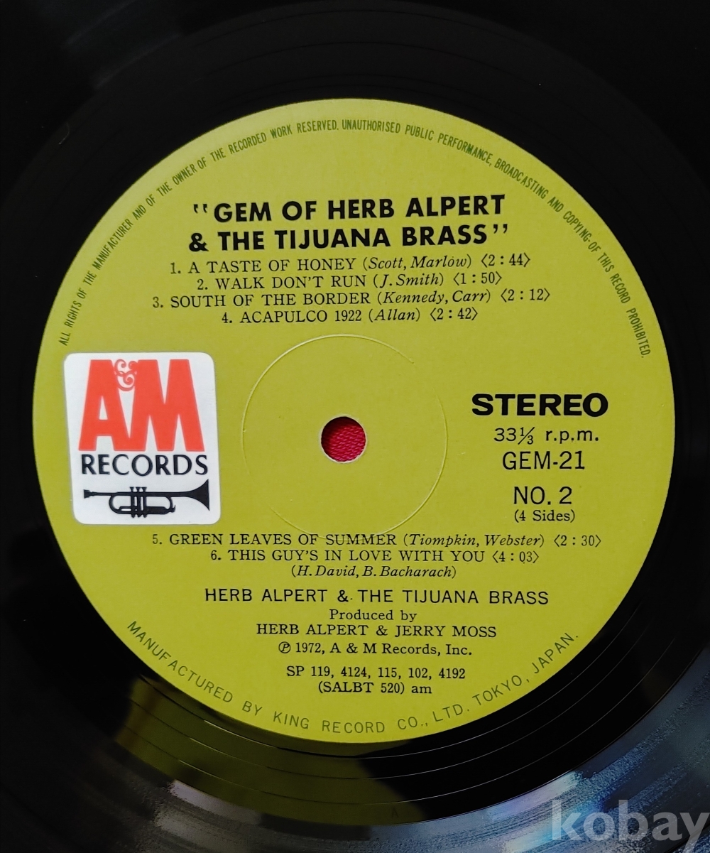 Herb Alpert & Tijuana Brass / 2장 / 트랙은 별도로 제공하지 않습니다 / Nm