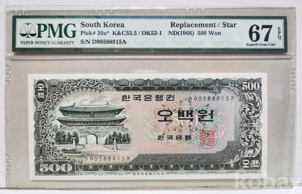 -대한민국 남대문 오백원 90포인트 PMG 67 고등급이며 그레이딩 입니다.