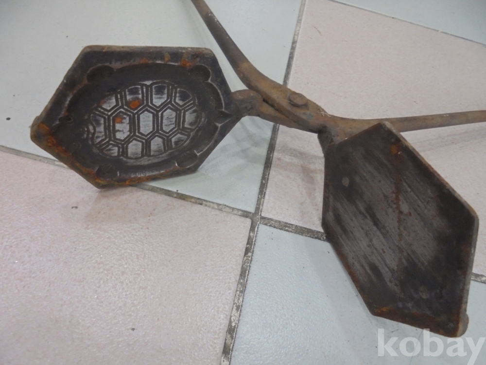 옛날 잘살던집에서만 사용하던 명절에 고급약과등을 찍어 불에구어내던 거북등껍질 장수부귀 무늬로 귀한 무거운 무쇠약과 집게