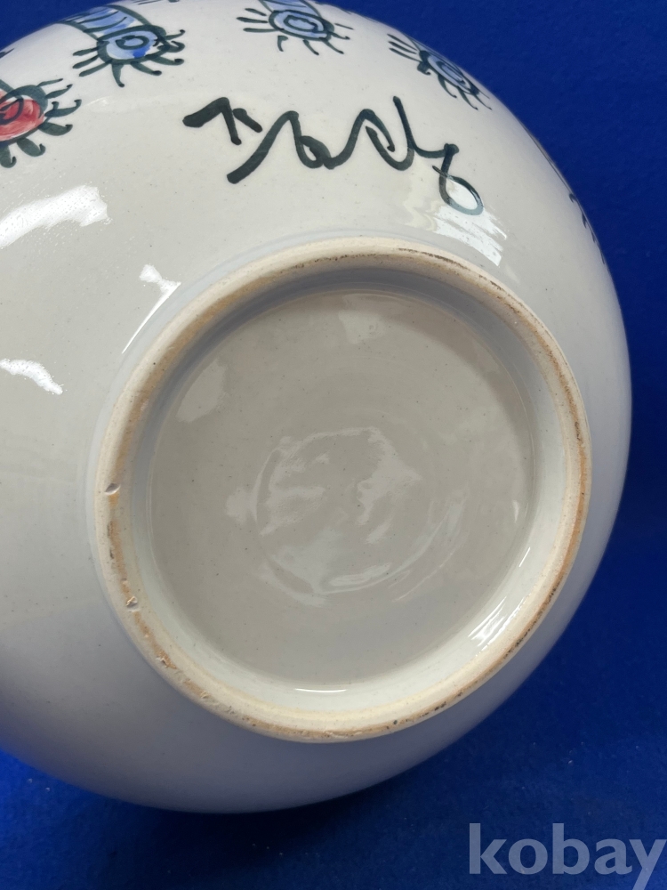 도자기 표면에는 중광 특유의 해학적이고 자유분방한 필치로 인물과 동물이 그려져 있으며,