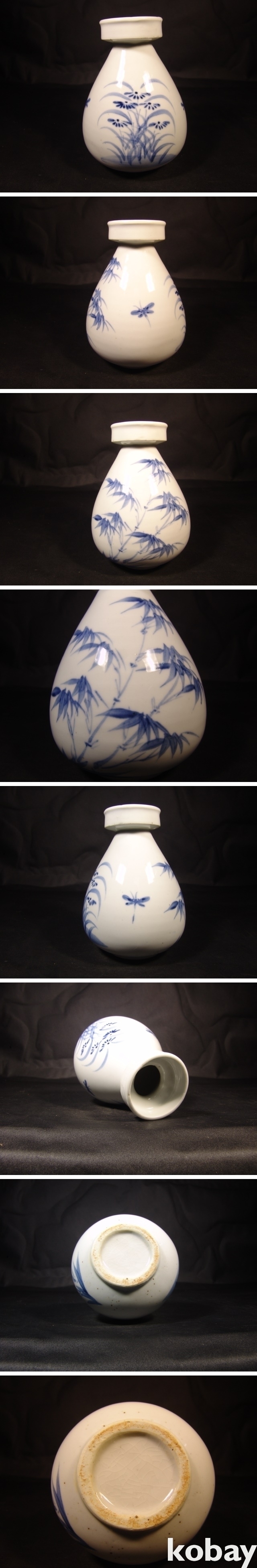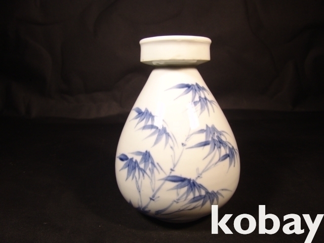은은한 발색의 청화로 시문된 난화문과 죽문이