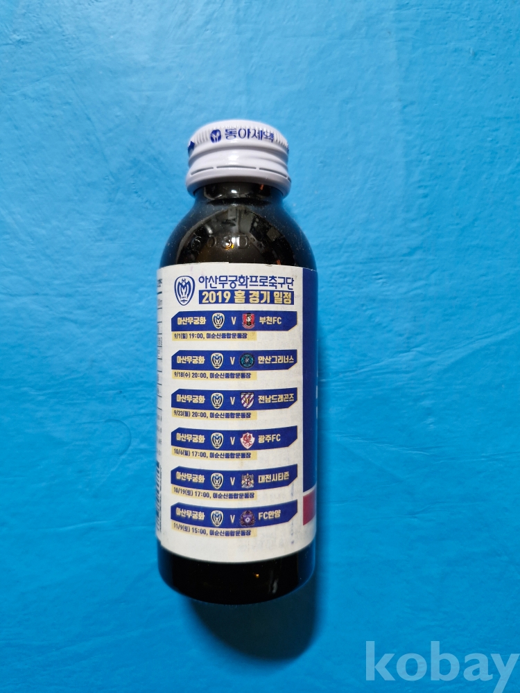 2- 박카스병 라벨지에 홈팀에서의 경기일정 안내문
