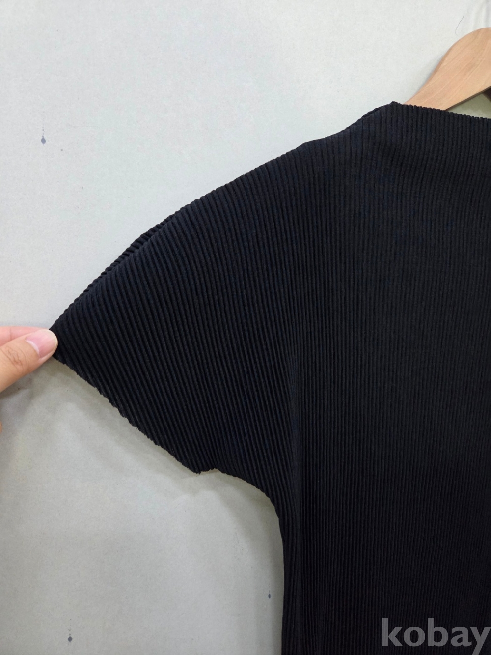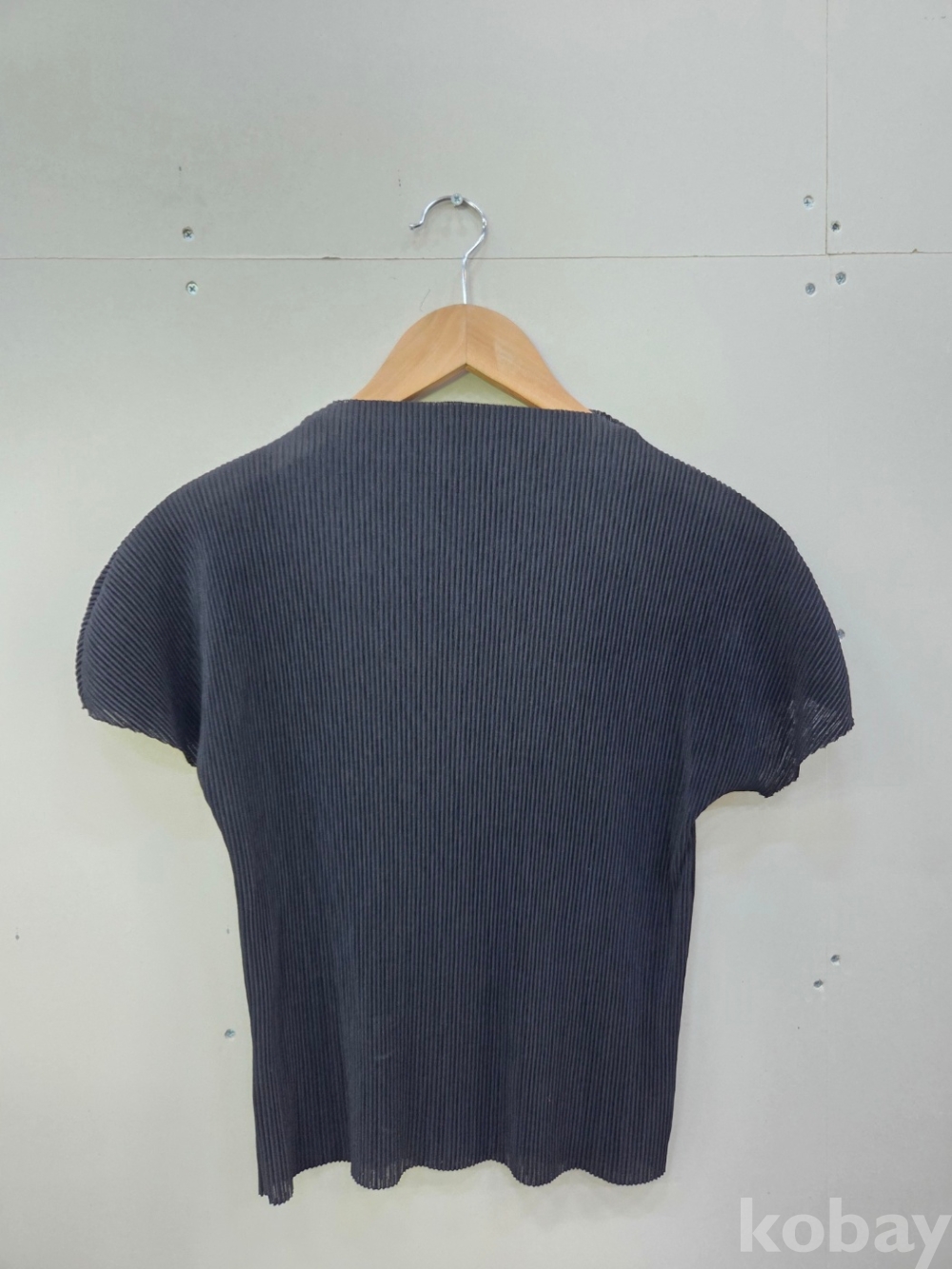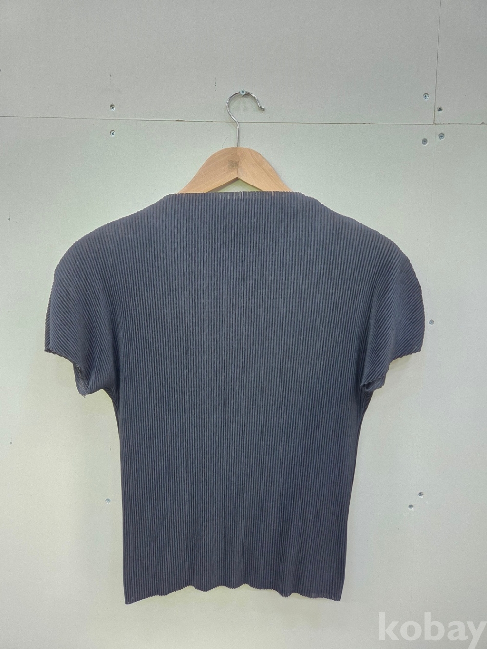 [천원옷장] #42 시스루플리츠 여성 그레이 플리츠 크롭 반팔티 데일리 슬림핏 탑 55-66