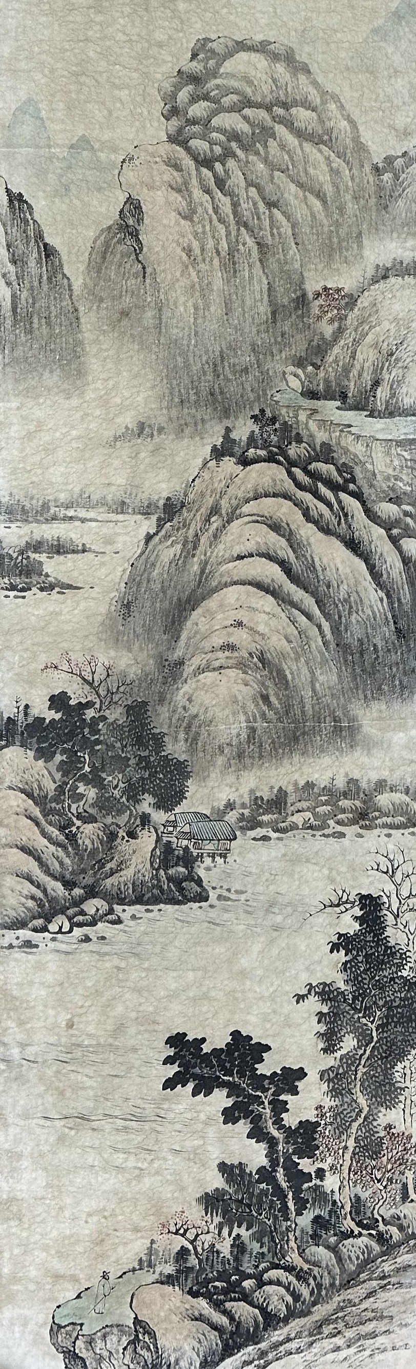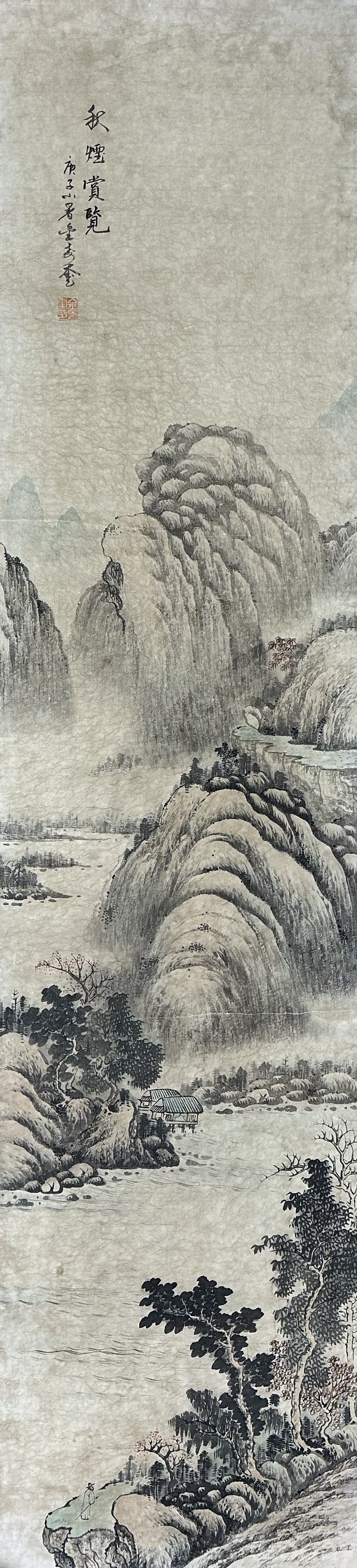 ‘秋煙賞覽(추연상람)’은 가을 안개가 자욱한 산중의 풍경을 그린 고요한 산수화입니다. 겹겹이 포개진 산봉우리와 그 사이로 흐르는 강물, 그리고 아래쪽의 초가집은 자연 속 인간의 작은 존재를 상징하듯 잔잔히 배치되어 있습니다. 옅은 먹의 농담으로 표현된 안개는 계절의 깊이와 정취를 더하며, 전체적으로 청아하고 평온한 분위기를 자아냅니다. 붓끝의 여백과 번짐이 절묘하게 조화를 이루며, 보는 이로 하여금 마음속까지 맑아지는 느낌을 줍니다. 가을의 정취를 감상하며 자연과 하나 되는 선비의 마음을 담은 작품입니다.