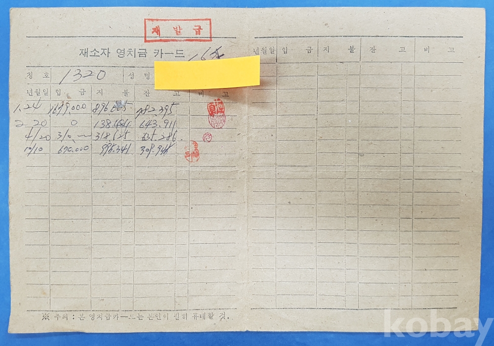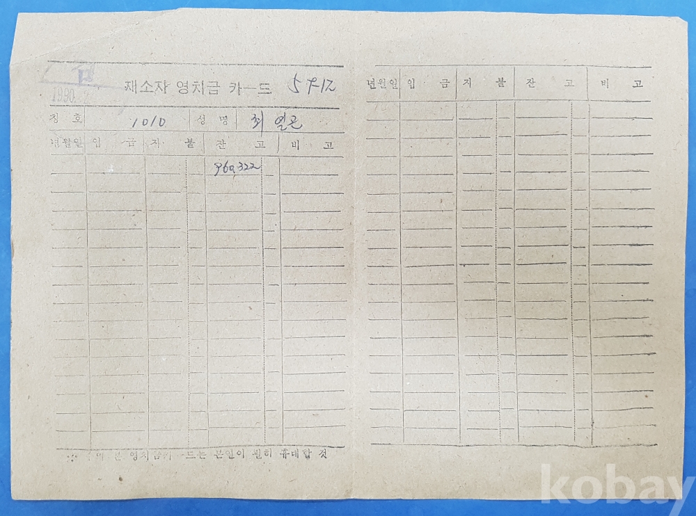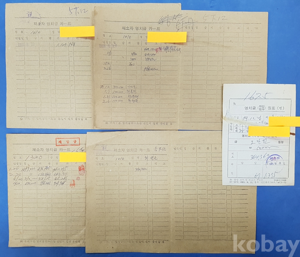 **** 재소자 영치금 카드, 원표 등 5부