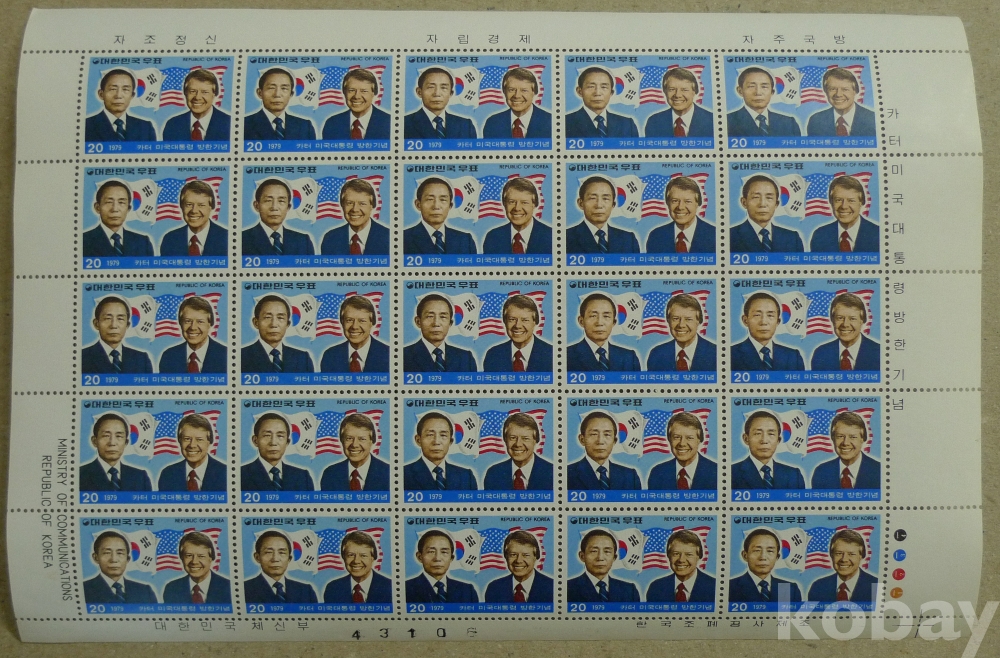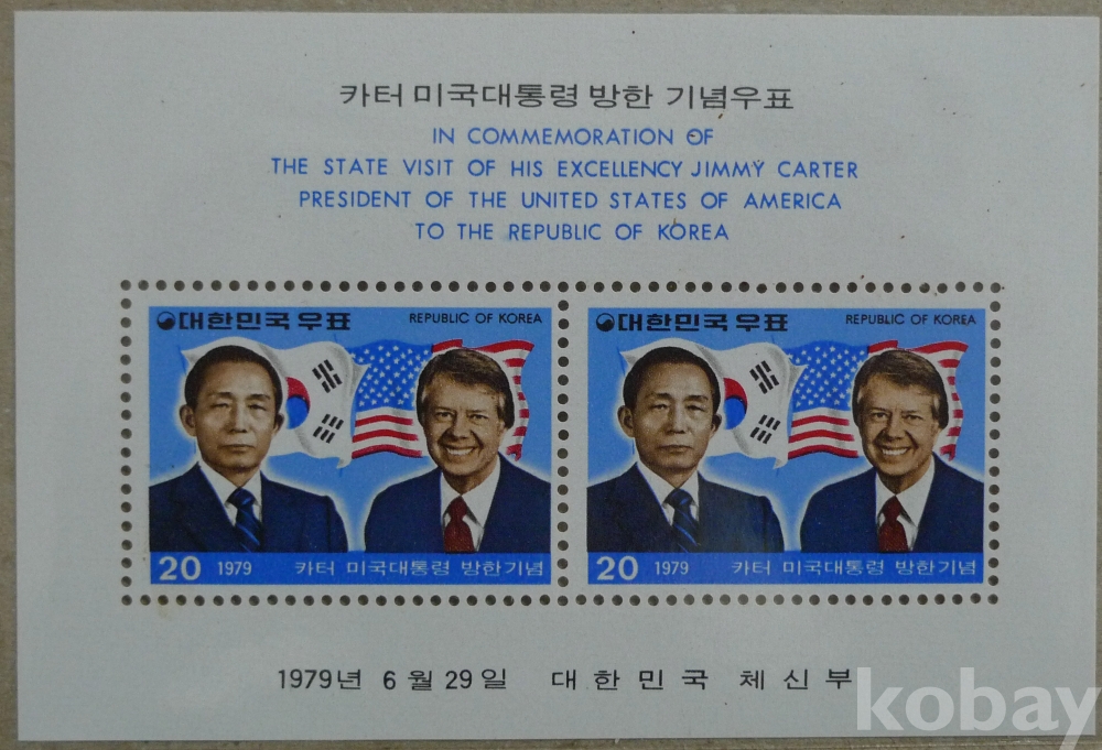 1979년 카터 미국 대통령 방한 기념우표 전지와 소형시트