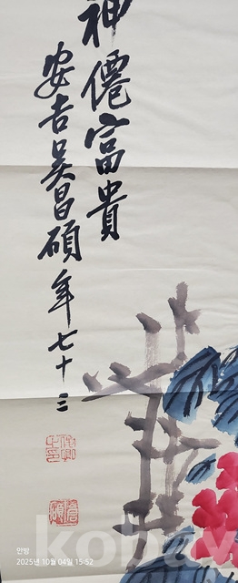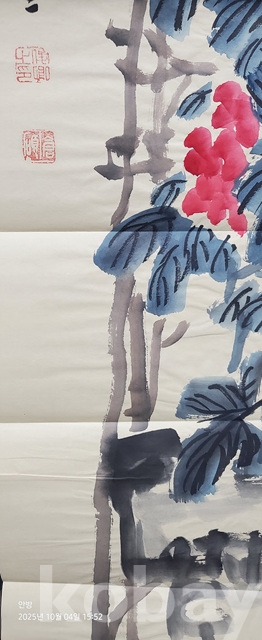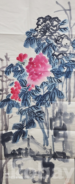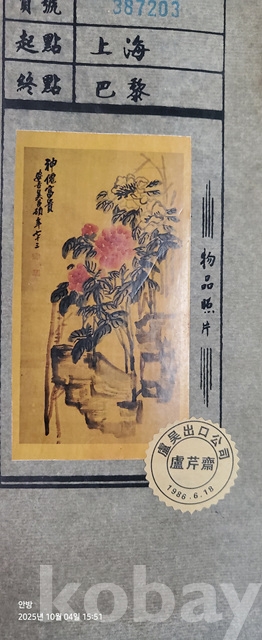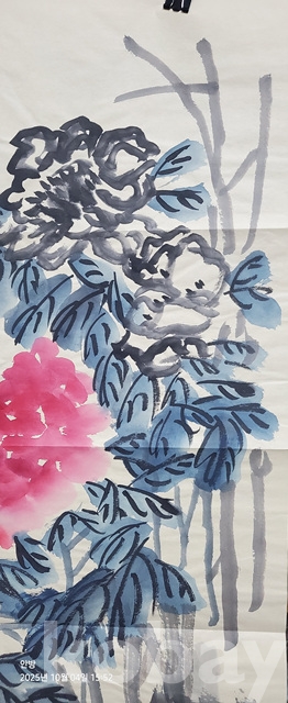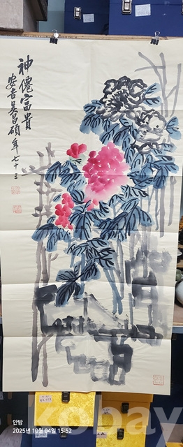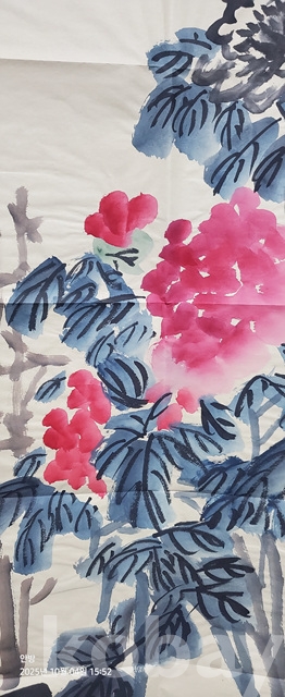 h-107.중국유명화가 오창석의목단(실체그린그림미감정)