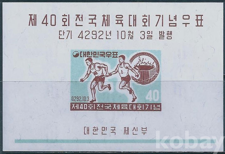(한국시트-637)1959년40회전국체전시트(미사용제)-MNH, VF