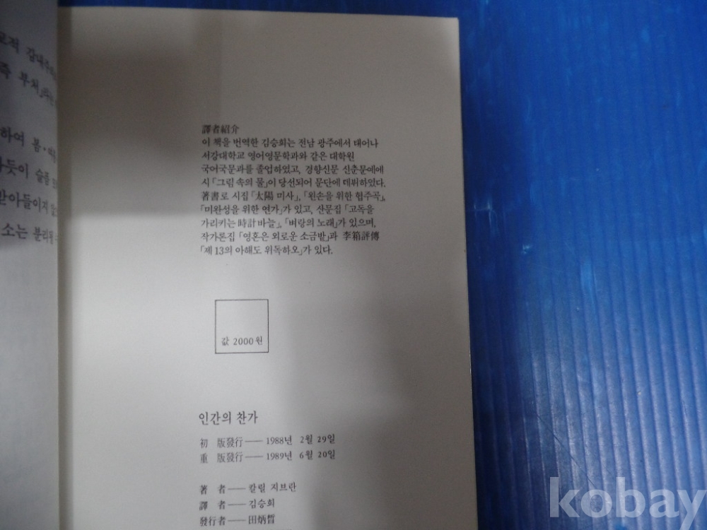 인간의 찬가 ,,,칼린지브란 지음,,,89년,,