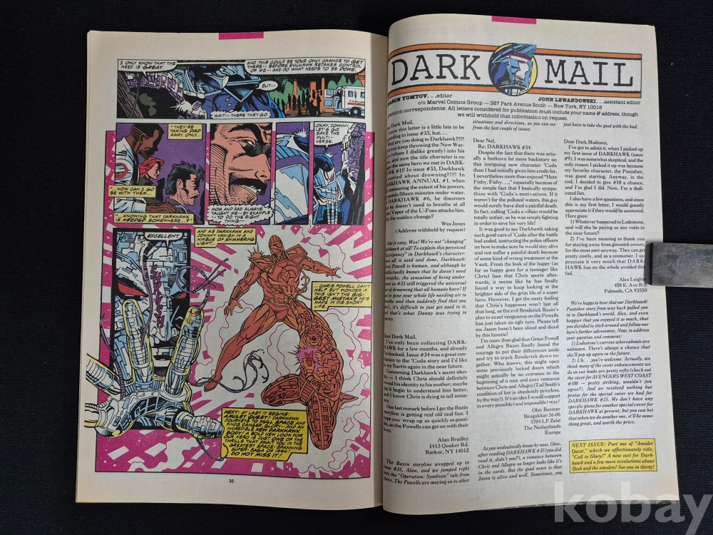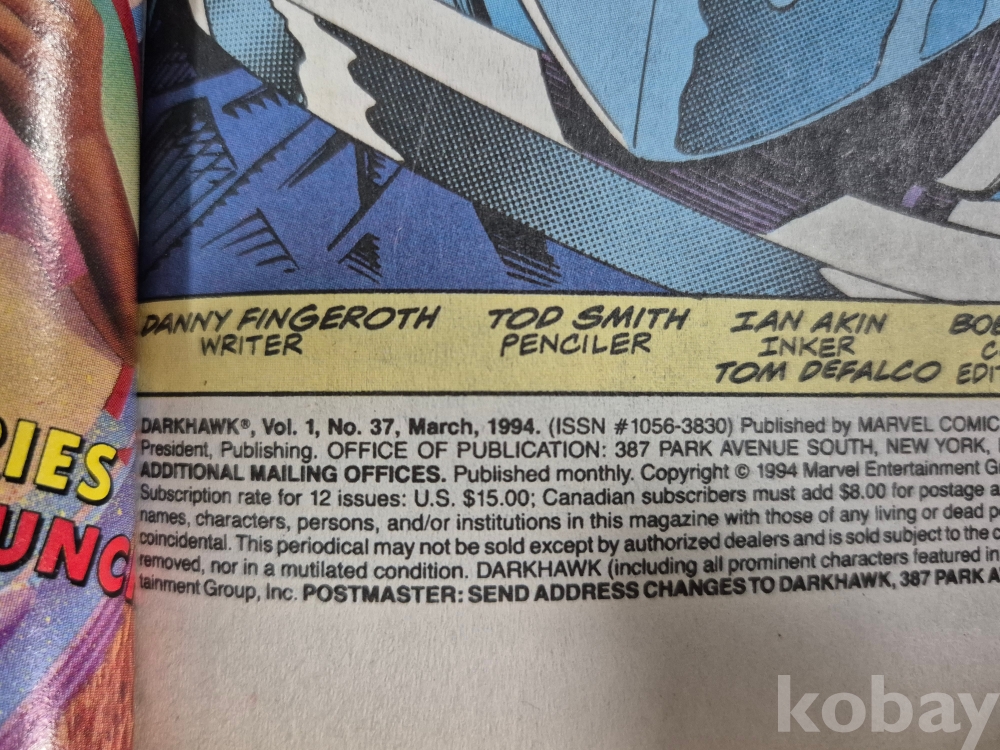 [슈퍼히어로 만화 모음展] - 다크호크(Darkhawk) / Vol.1 #37 - 1994년 3월 / 마블 코믹스(MARVEL COMICS)