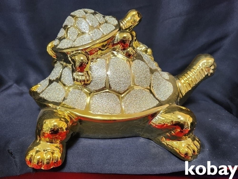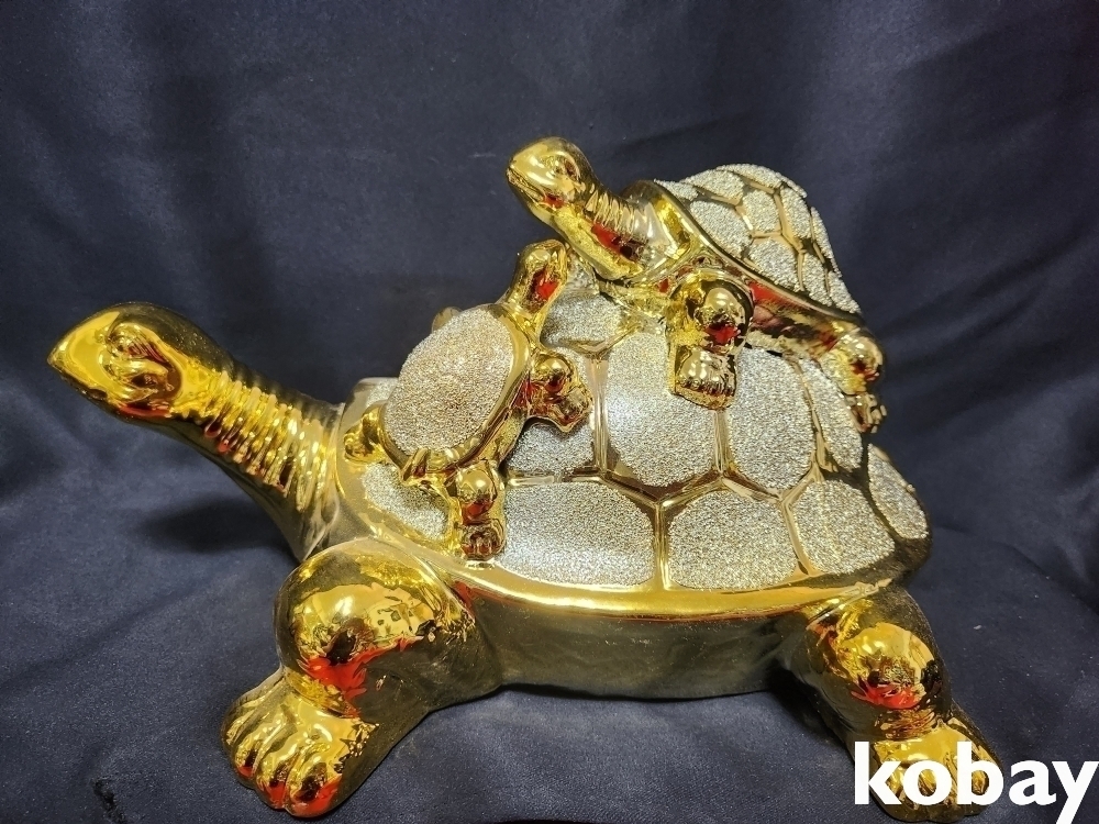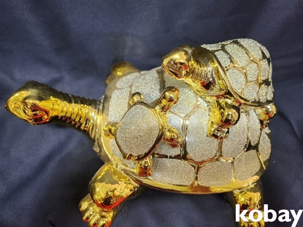 도자기로 완성된 금채 새끼를 등에 업은 거북이 상입니다,