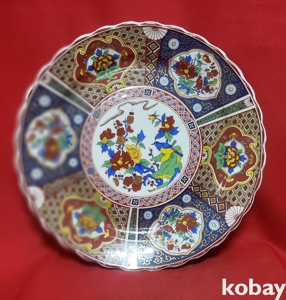 금채로 완성된 꽃과새(花鳥) 문양 큰 접시입니다,