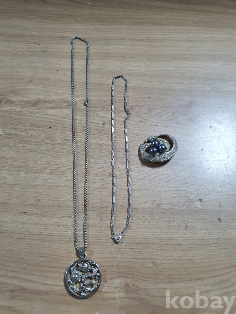 {천원경매}10-1564 패션목걸이2개34~22센티 흙진주브로지1개