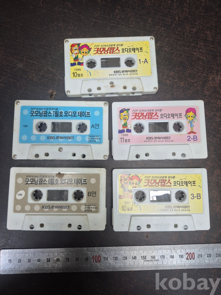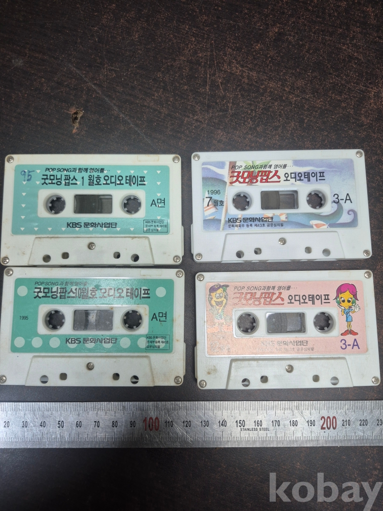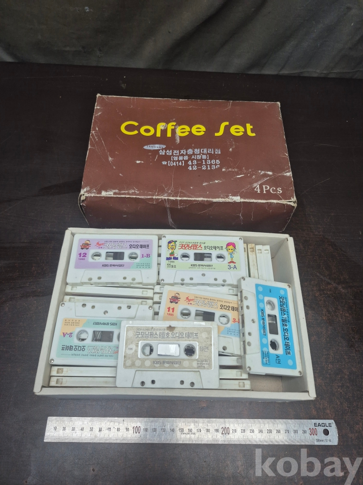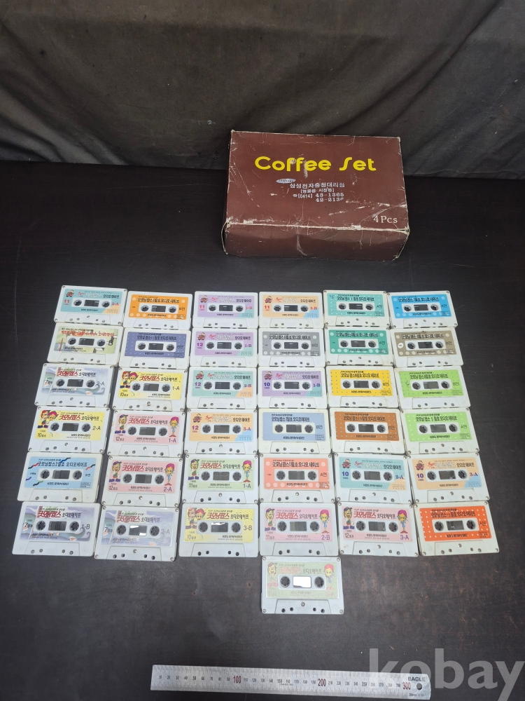 1995-96년 팝송과 함께 영어를 굿모닝 팝스 오디오 테이프 37점 일괄 케이스 삼성전자 커피세트 케이스 포함 28*18*-8