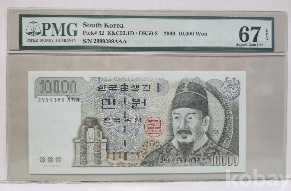 -대한민국 5차 만원 가가가 29포인트 PMG 67 고등급이며 그레이딩 입니다.