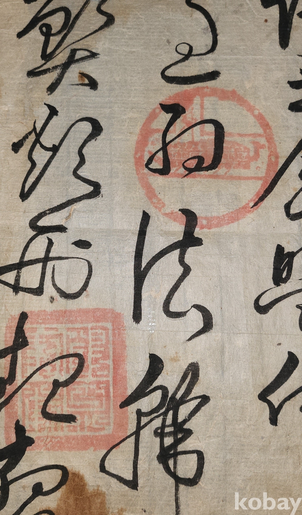 거북선 도장과 큰 낙관이 찍힌 조선시대 서예품입니다,