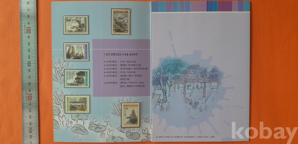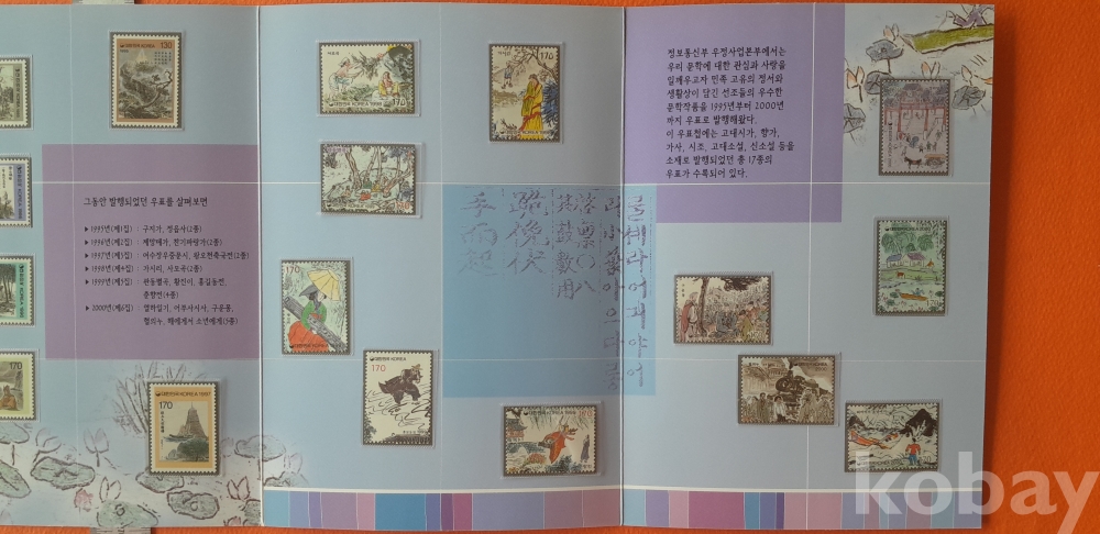 문학시리즈 우표 17매가 첩부되어 있습니다.