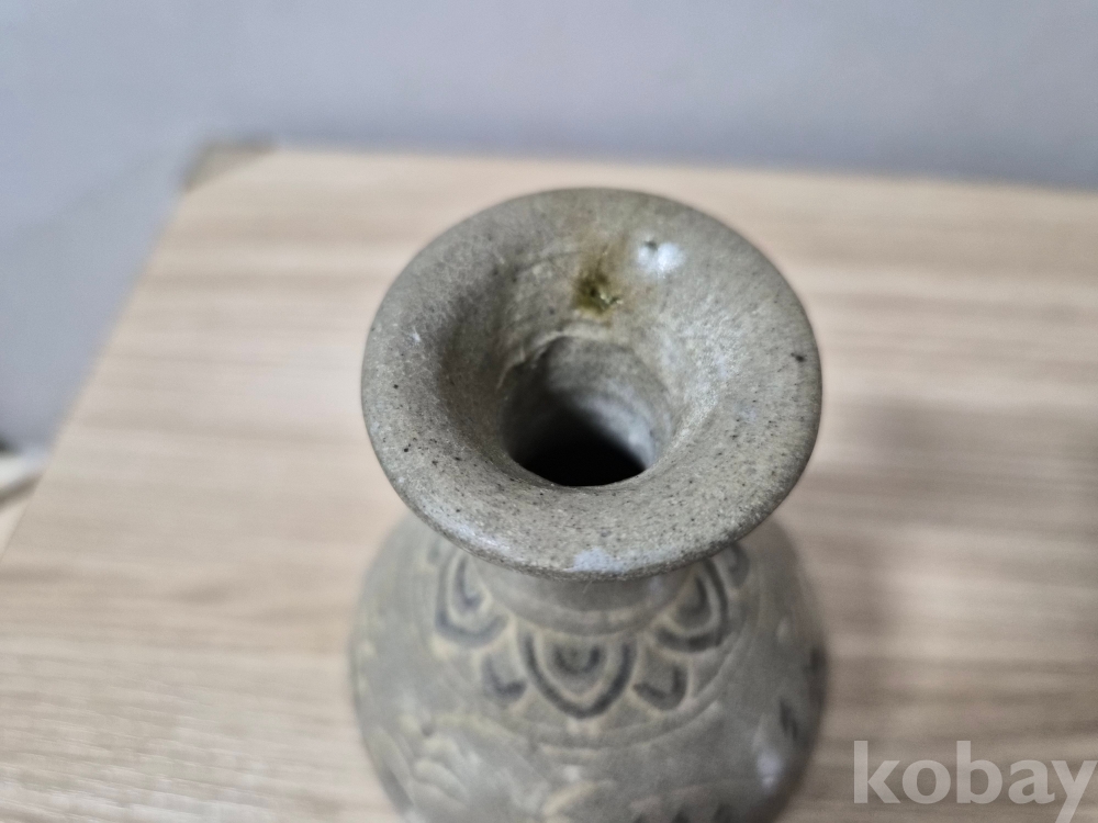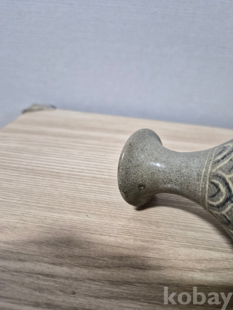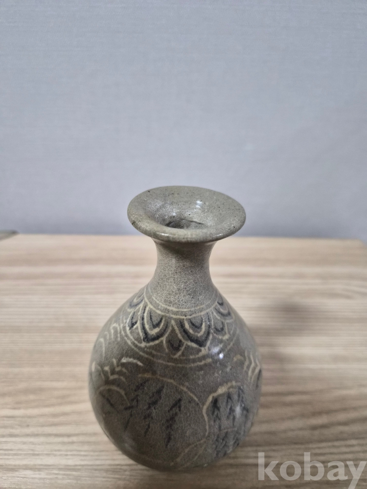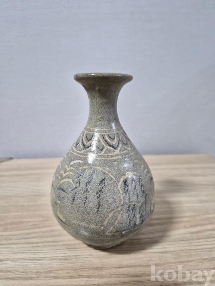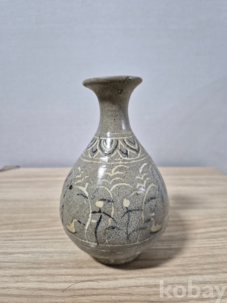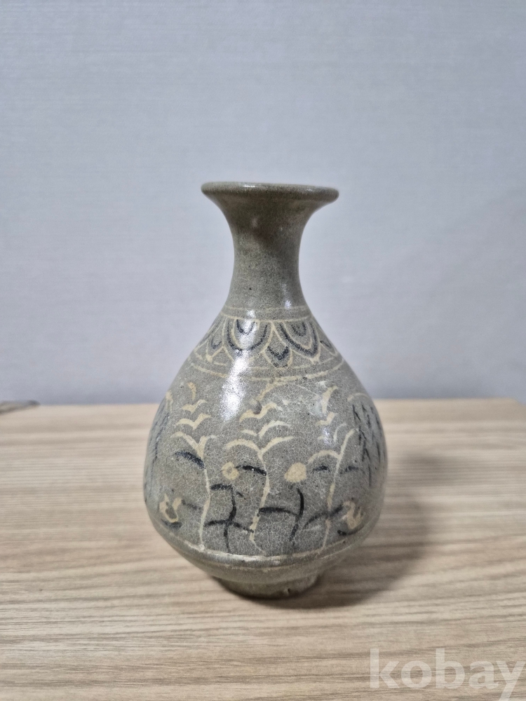 분청사기 흑백상감 수류문에 면상감4마리가 시문되었고 어깨부분에는 연판문이 흑백상감으로 되어있습니다 구연부에