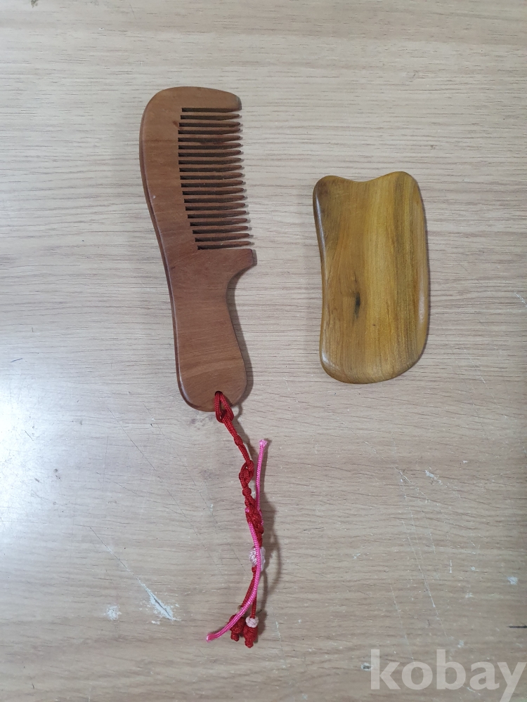 {천원경매} 11-0638 우드빗과 괄사마사지기(17cm, 10cm)