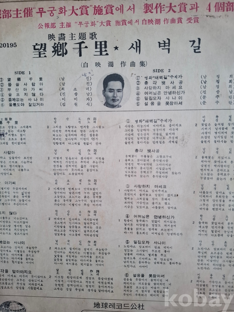LP---백영호 작곡집 영화주제가 망향천리,새벽길,남진,최소녀,진송남,이미자,김원식,문주란,남정희등 (음질 좋습니다)