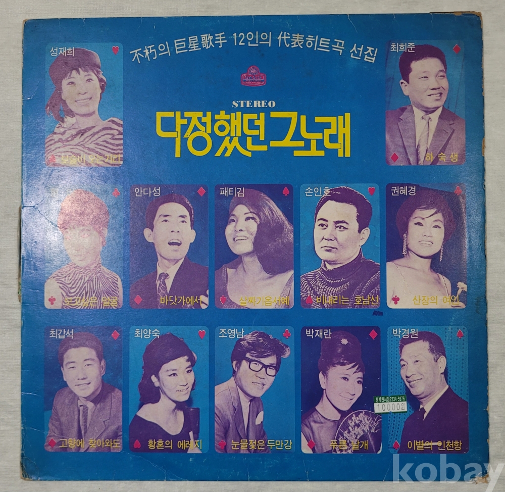 성재희,최희준,권혜경등 12인의 힛트곡을 모음집으로 발매한 "다정했던 그노래" 컴필레이션음반입니다.