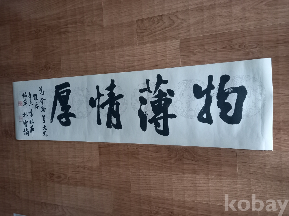서예 물박 정후 물질보다 정을 더 소중히 하라는 뜻입니다