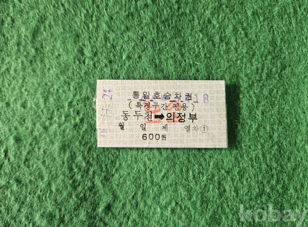 - 통일호 승차권 (특정구간전용) " 동두천 - 의정부 " (600원)