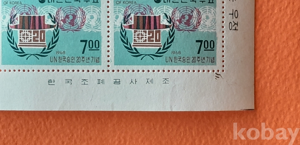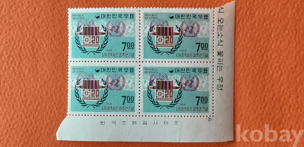 UN 한국승인 20주년 기념 4매 명판 입니다.