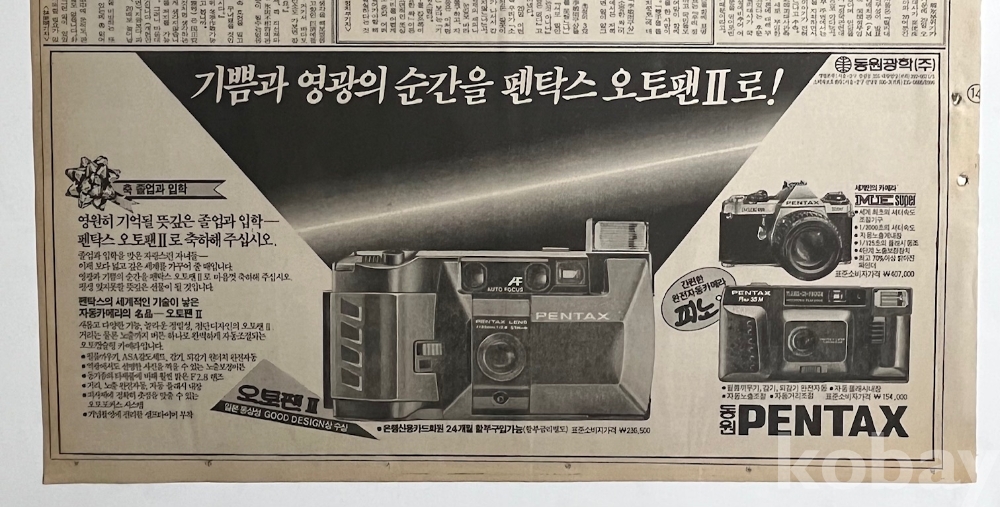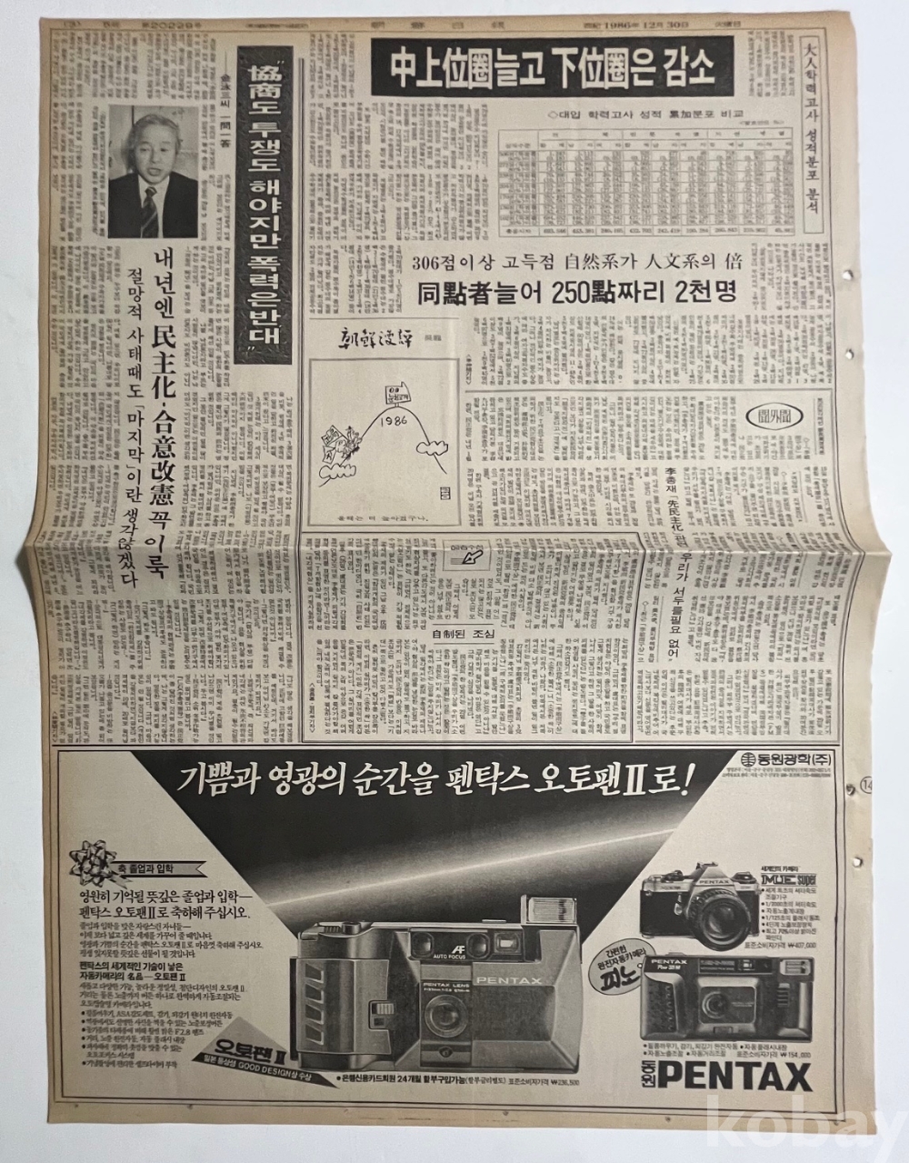 카메라 광고가 실린 1986년 조선일보 낱장입니다.