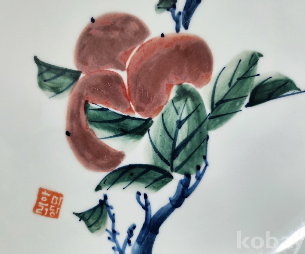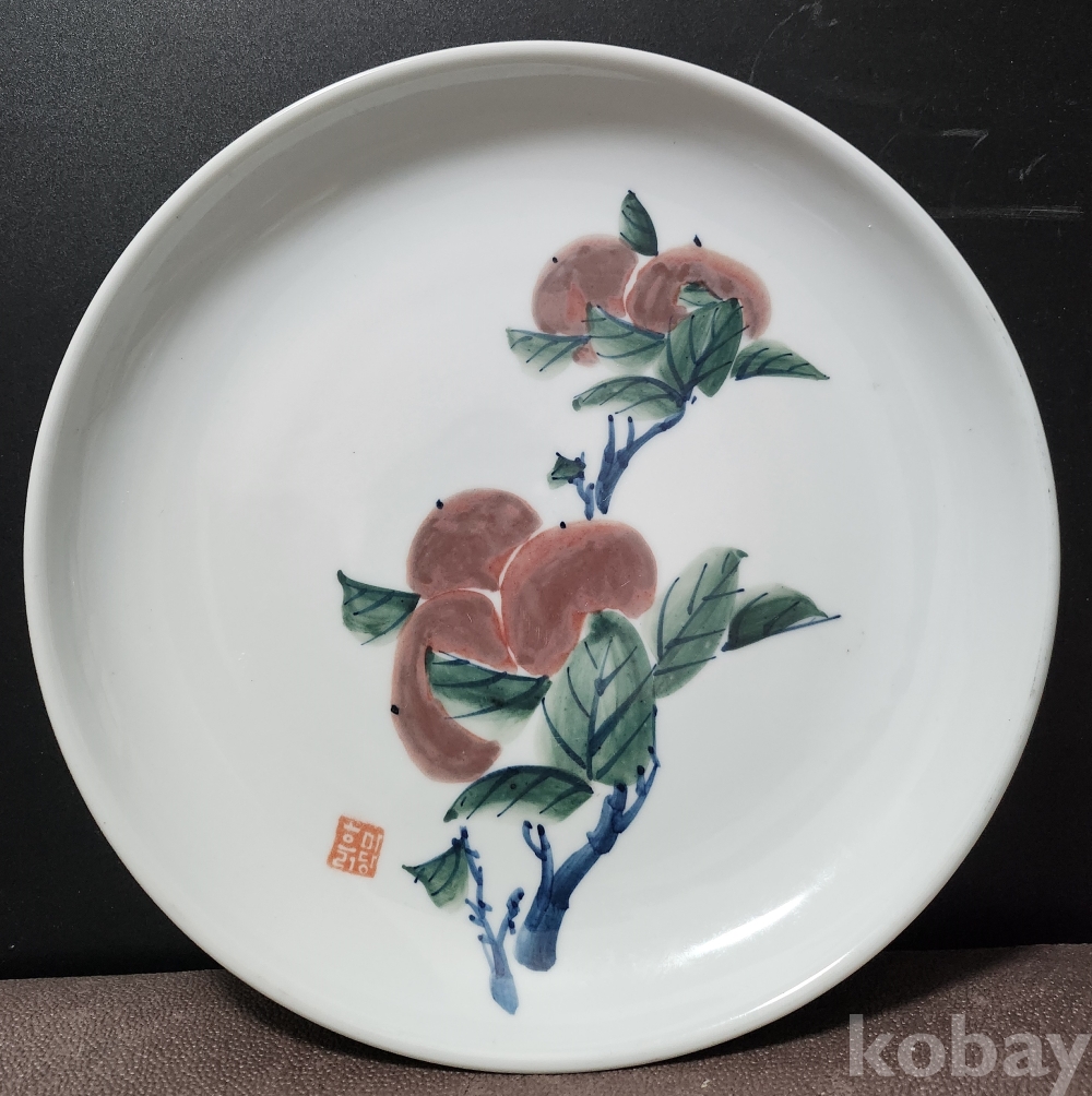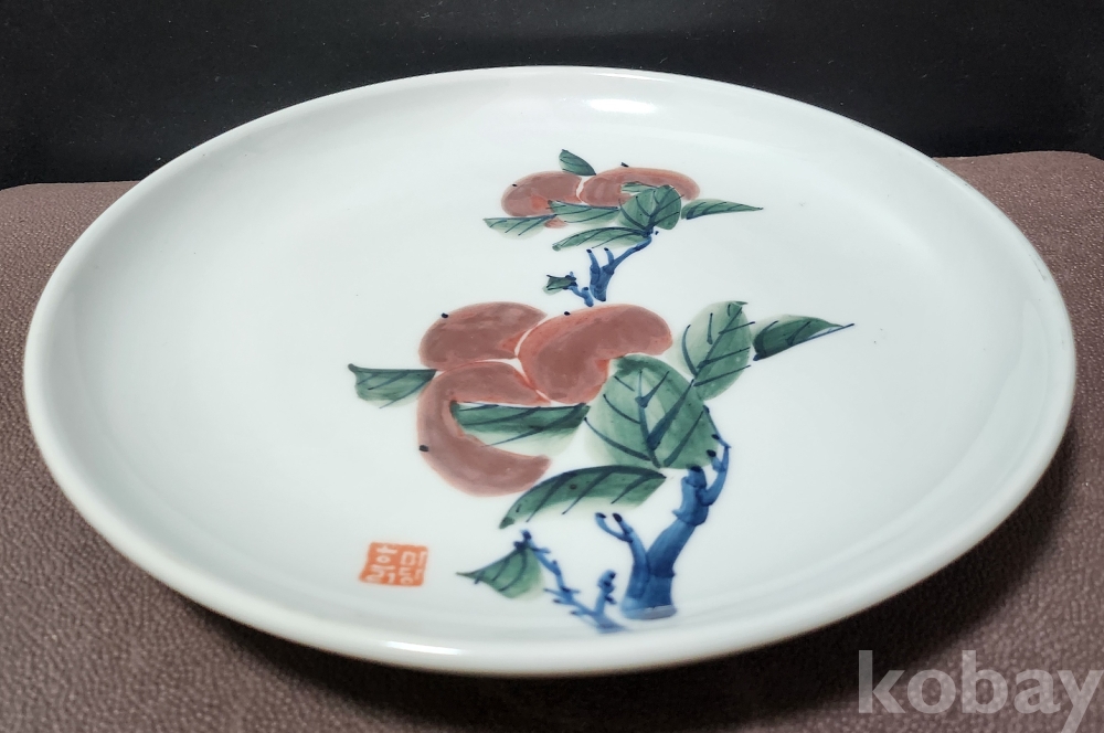 < 도예가 작품 > 백자청화진사과실문접시 白磁靑華辰砂果實紋楪匙