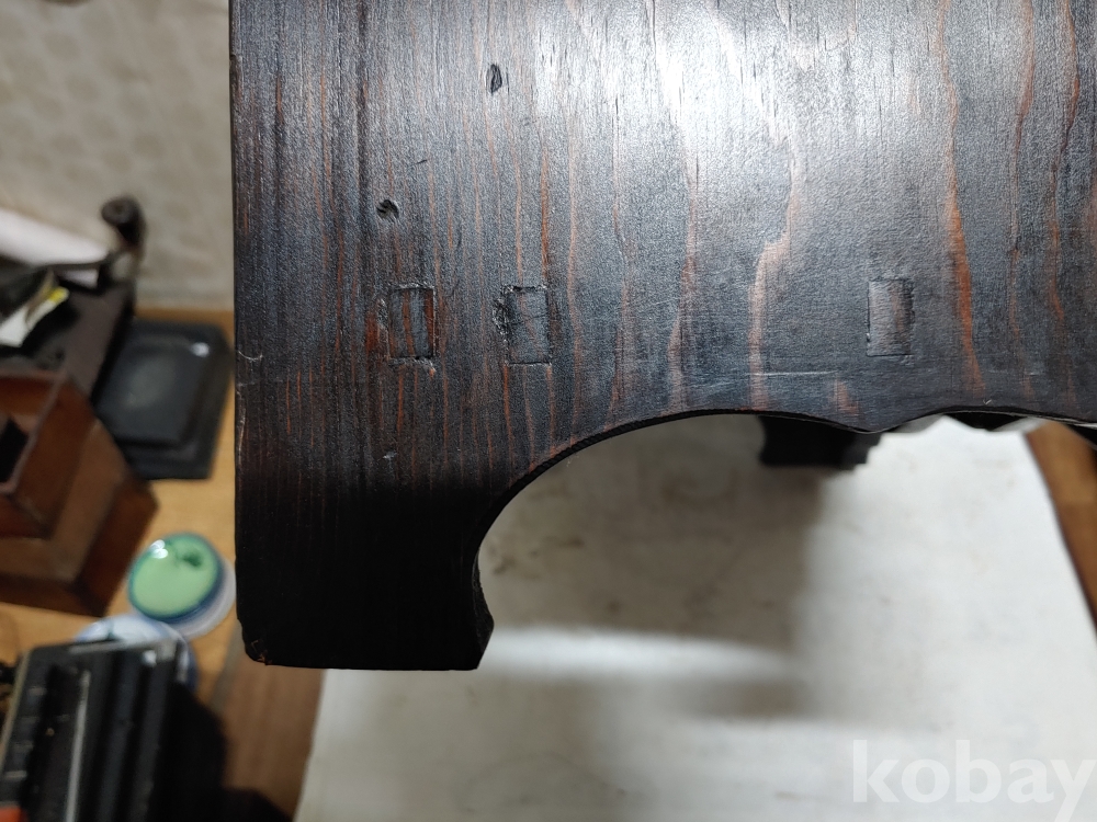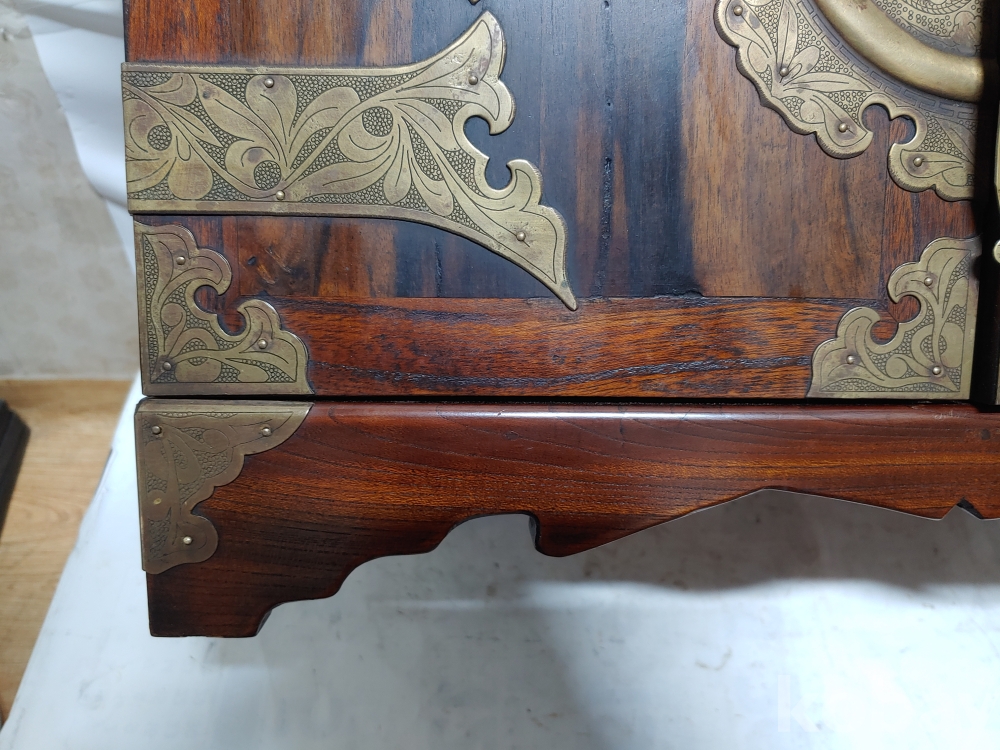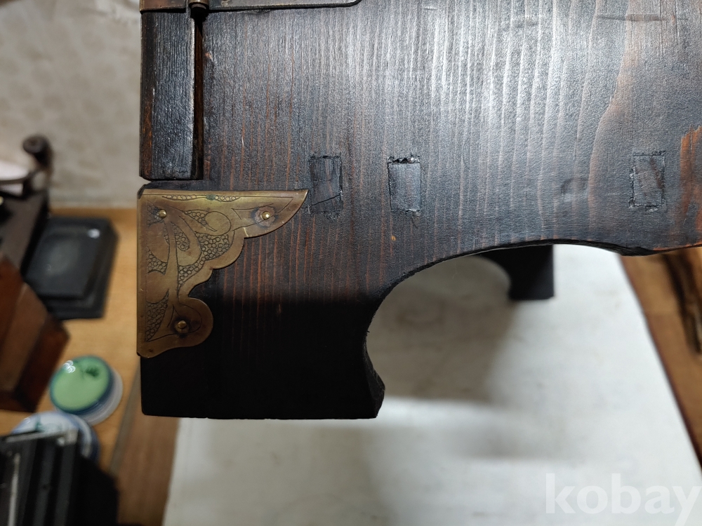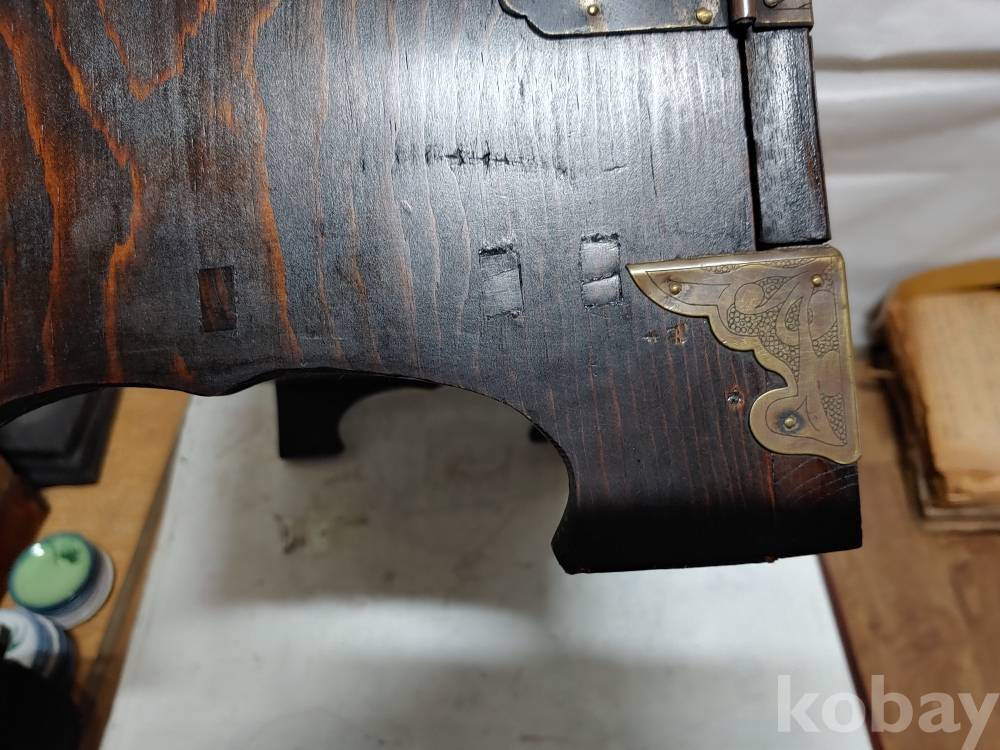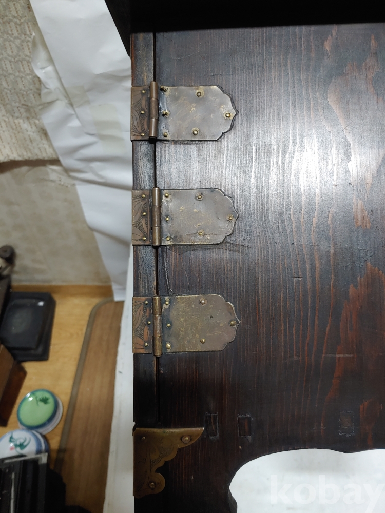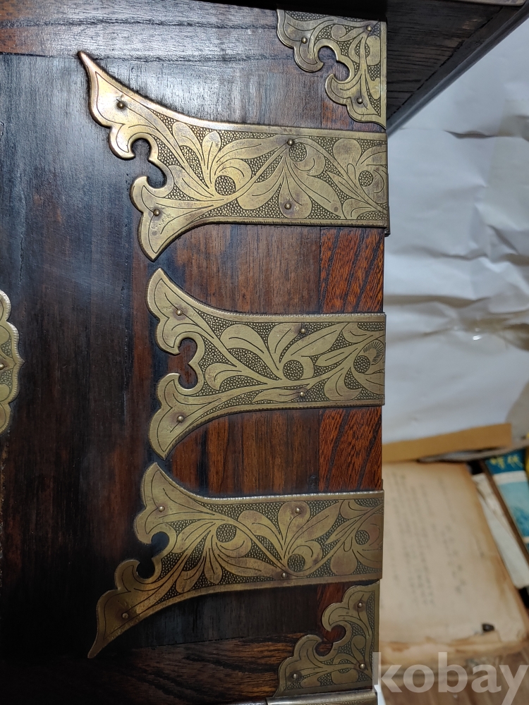 앞면은 얇은 먹감나무 스끼다를 붙인것이며 다른부분은 밤나무입니다 참고로 하시고 신중한 입찰을 부탁 드립니다