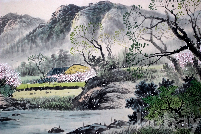 九峯(구봉) 윤성기의 산수화 - 낚시를 하고 있는 강가의 봄 풍경