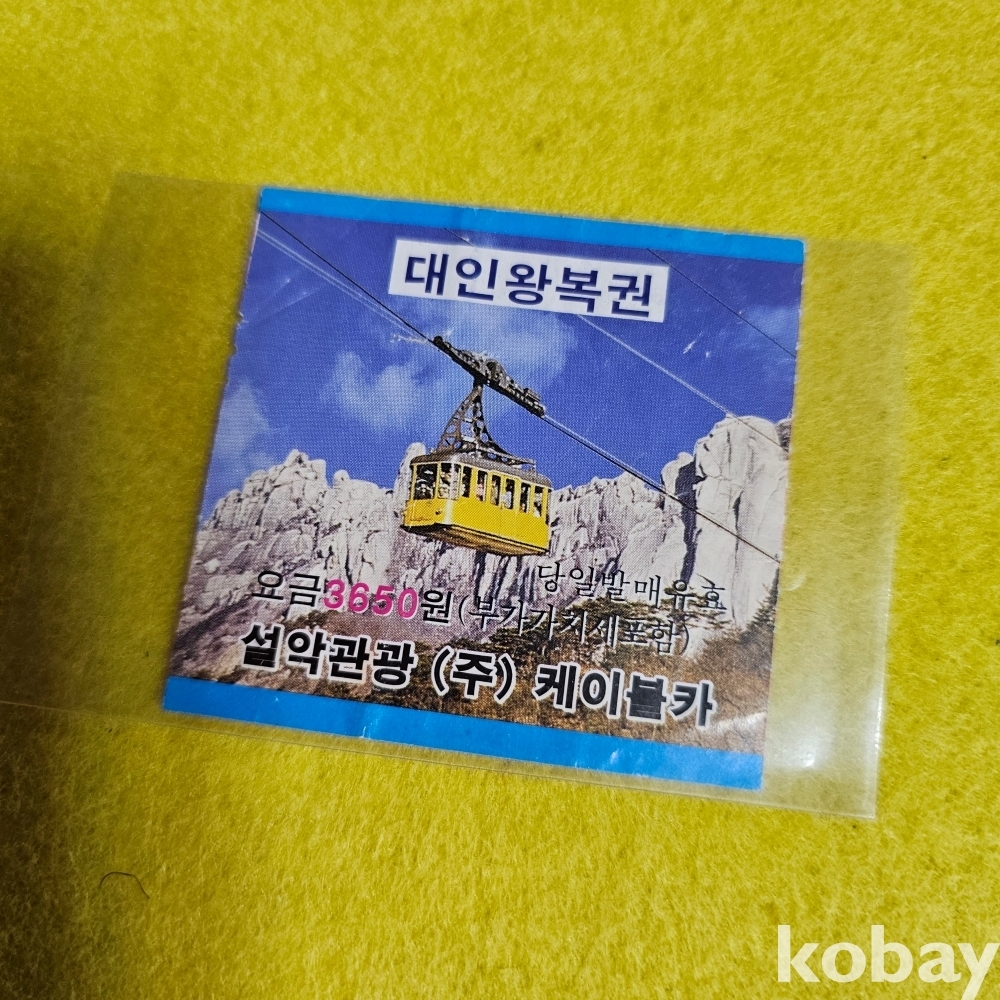 (((근현대사자료))) 오래전 설악산 케이블카 대인왕복권 (요금 3650원)