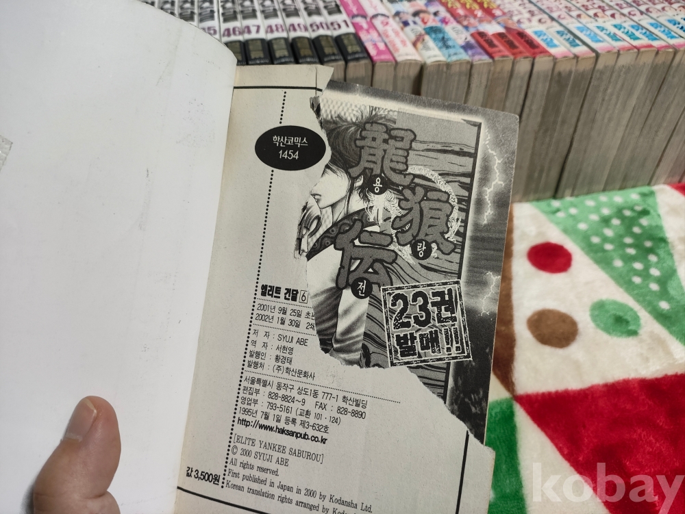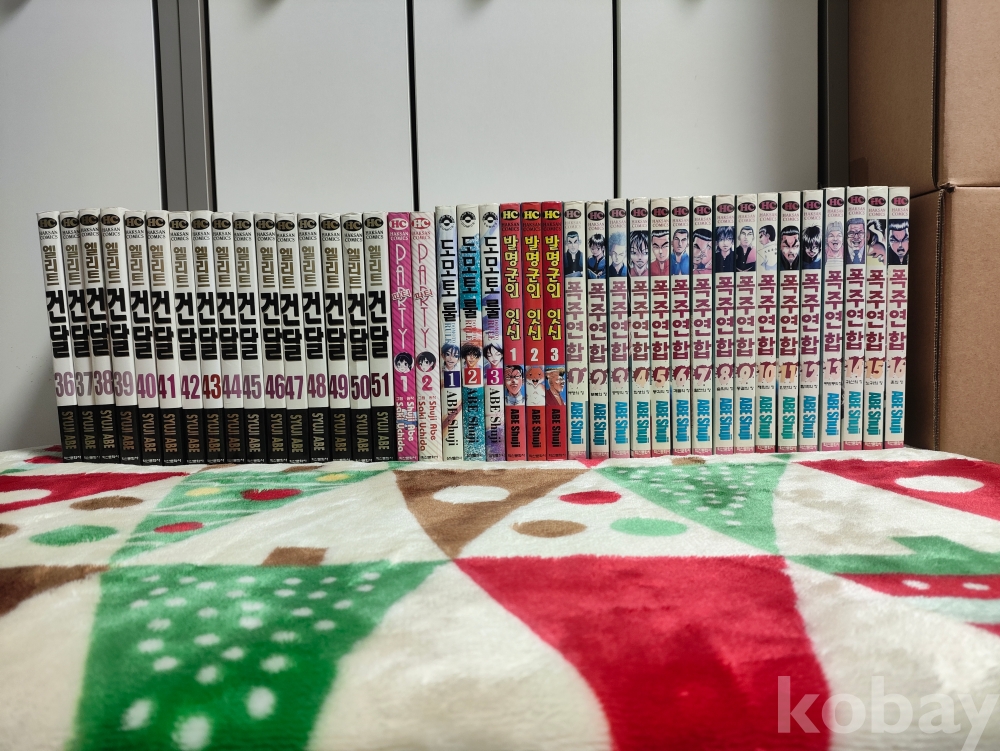 - 엘리트 건달 (1~51, 대여점) - 표지 고정 전권, 내부 손상 전권, 오염 전권, 표지 손상 9권, 물먹음 6권, 호침 2권, 목차 손상 1권, 페이지 유실 1권, 표지