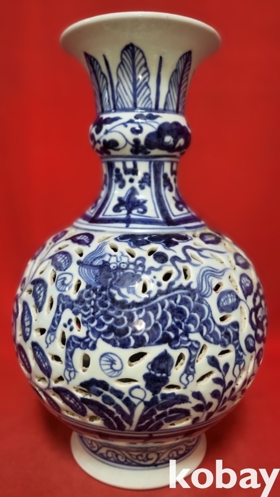대명선덕연제 관지 마용(馬龍)문양 투각 광구 향통병입니다,