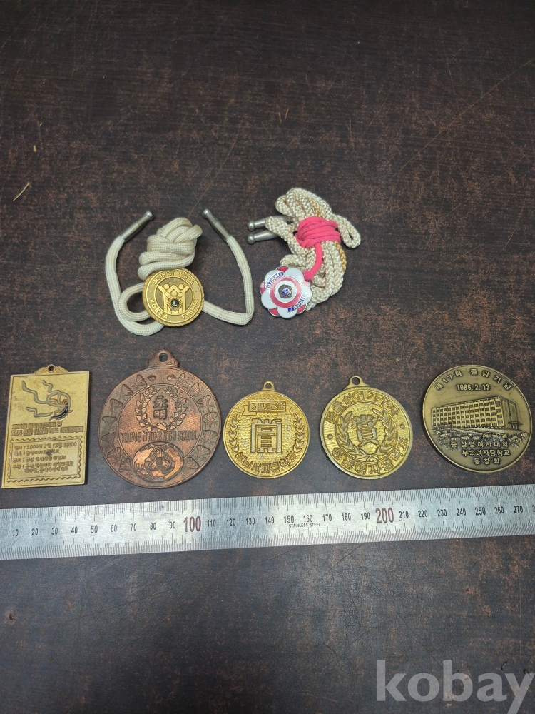 1980-90년대 성남여자중학교 성남서고등 상명여자대학 공주영명고등학교 졸업기념 메달과 팬던트등7점일괄 6.5*6.5*0.5