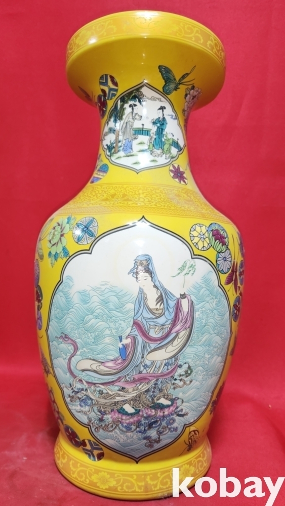 대청강희연제 관지 황지에 비천상 문양 광구병입니다,