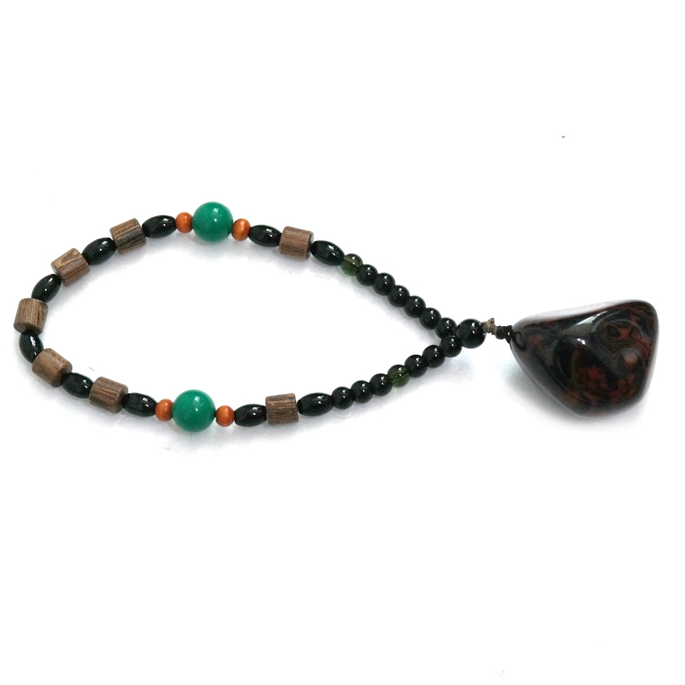 줄의 검은부분은 원석으로 만들어졌으며 마노옥 펜던트가 매달린 차량용 차걸이 입니다