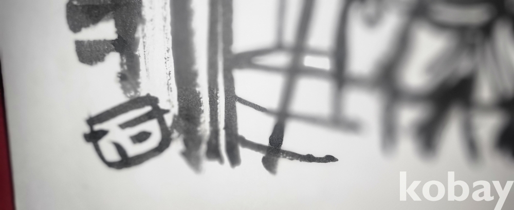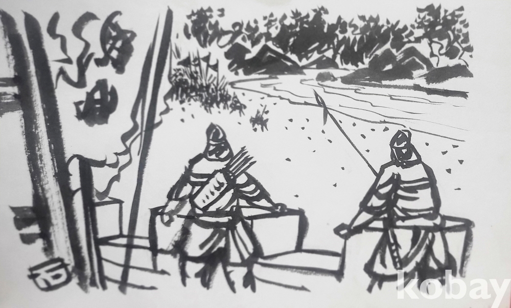 물과 먹으로 만 직접 그려진 수묵화 삽화입니다,