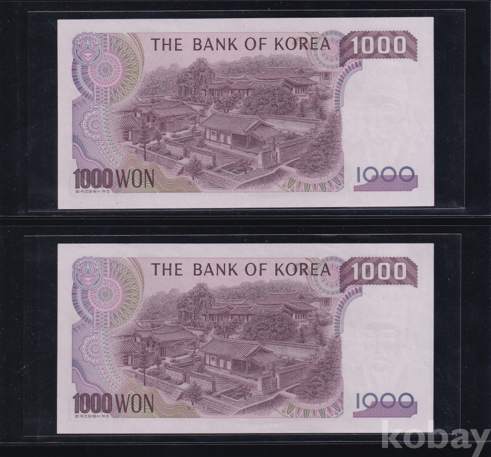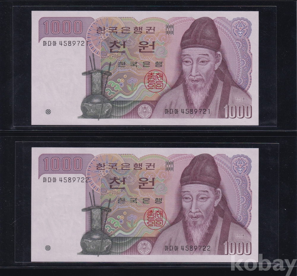 - 1983년 2차 천원 양성권 4포인트 2연번 미사용 지폐 - 2장 일괄