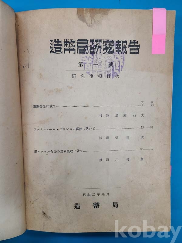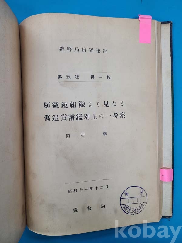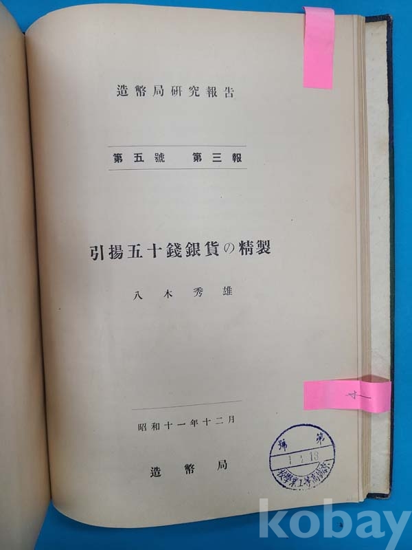 ▶造幣局硏究報告와 造幣局그림엽서 일괄/소화2년~16년(1927~1931년)/일본 발행,440쪽