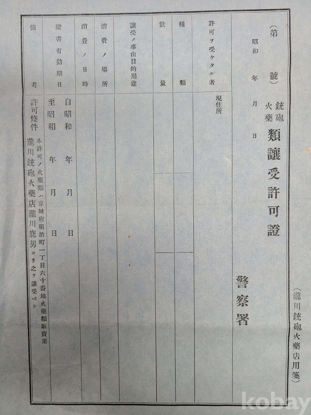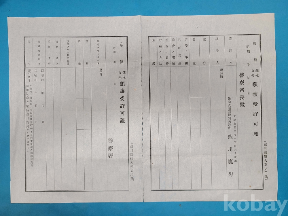 **** 일제강점기 총포화약류양수허가원 서식