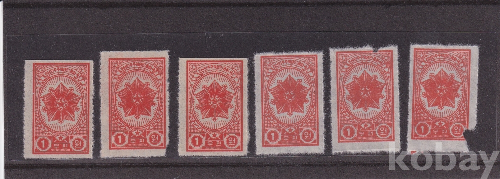 [윗동네 미사용 우표 모음展] - 국기 훈장 1원 단편 6장 일괄