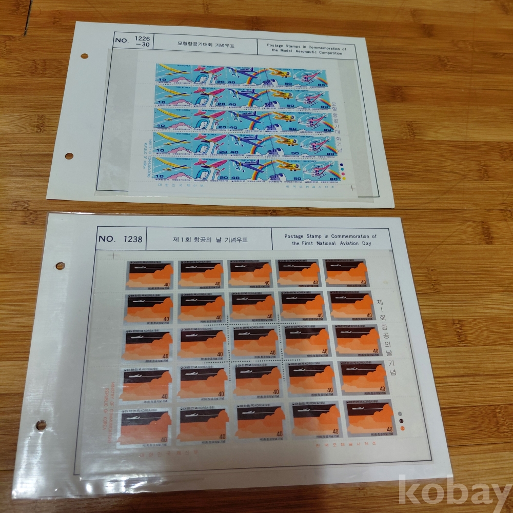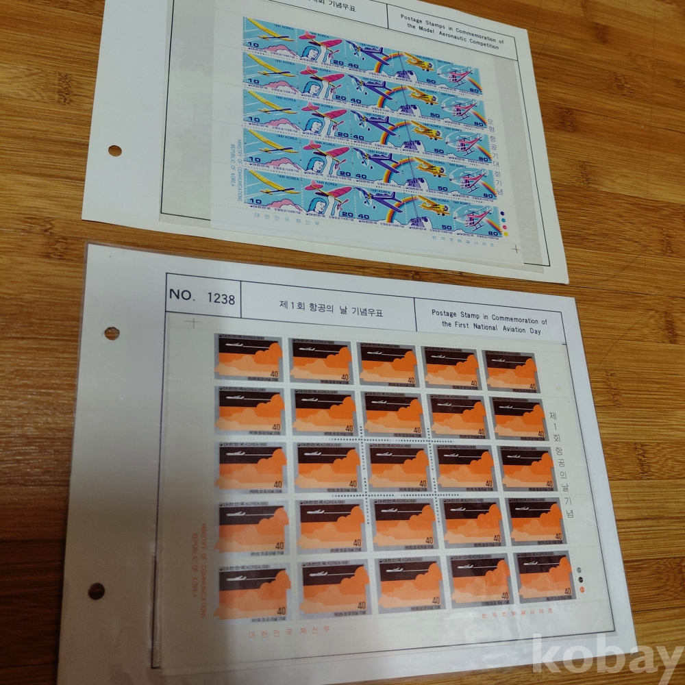 모형항공기대회 기념 전지우표 ㆍ제1회 항공의날기념 전지우표 두장일괄 올려드립니다