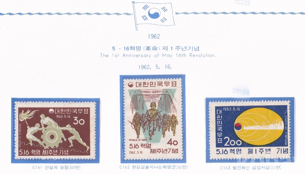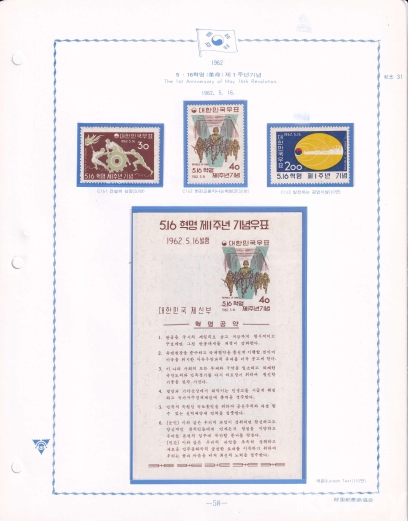 - 한국우표앨범 모음展 - 5.16혁명 제1주년 기념 우표 3종(1962년)