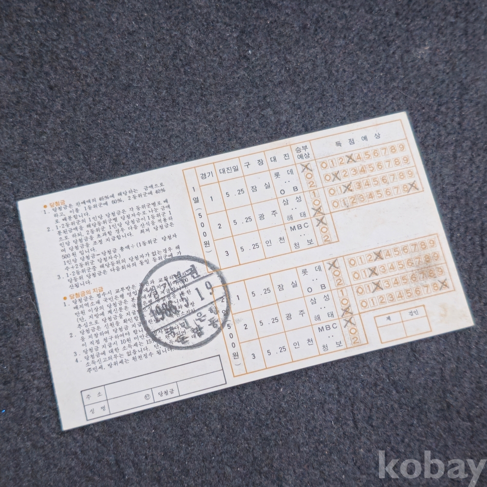 (((프로야구자료/야구복권/호돌이))) 1986년 야구복권 (제9회) (해태 선동렬)