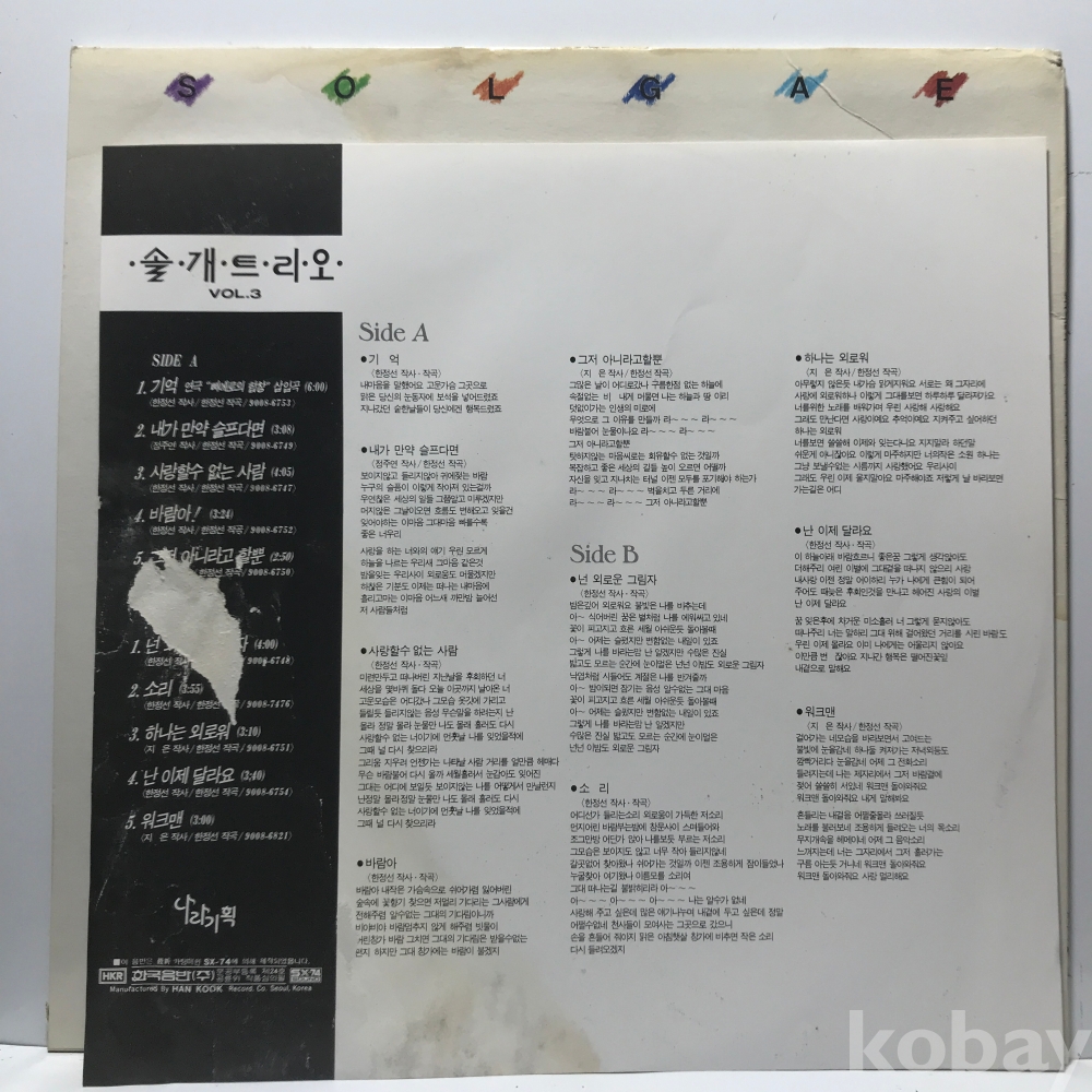 LP 35,350-10 솔개트리오 3집 - 기억/ 넌 외로운 그림자 . ` 90 한국 자켓 EX- 알판 EX+