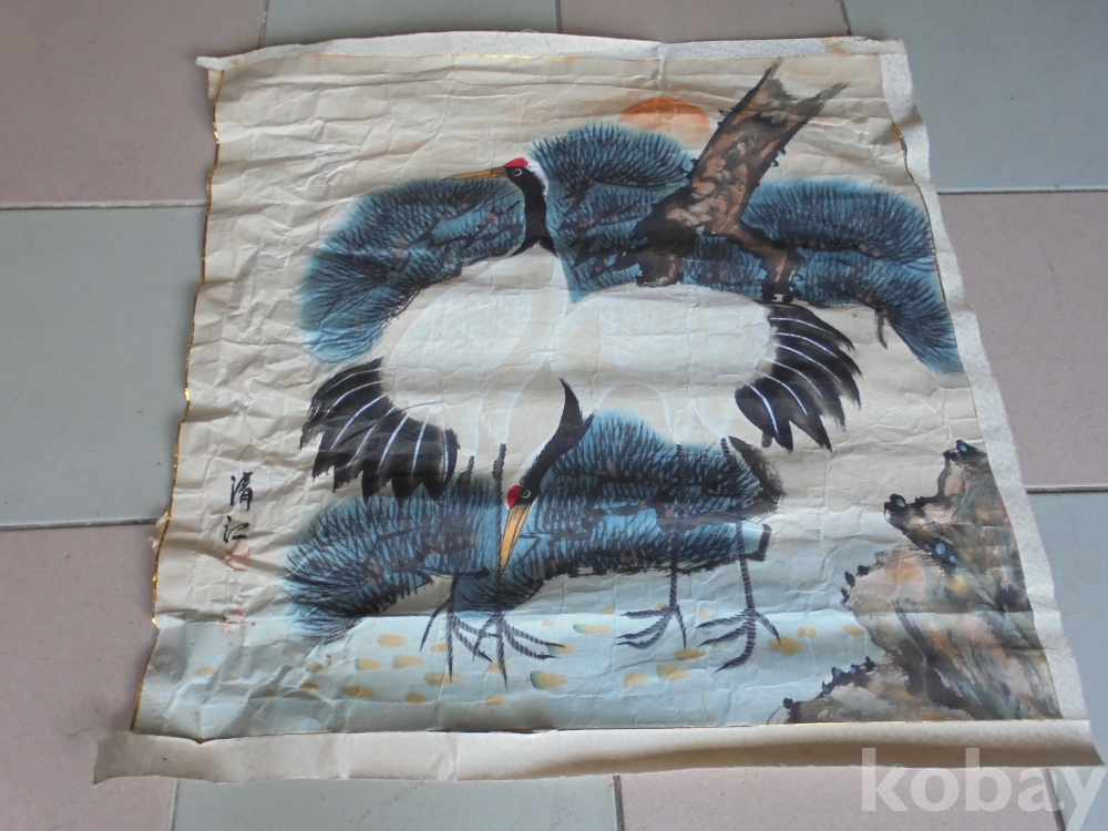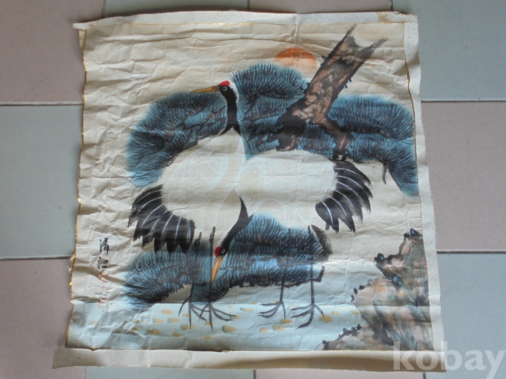 유명한 중견화가 청강 노송과 학 옛부터 즐겨그린 오래사는 십장생으로 흰당채도사용한 뜻깊은 노송과 학그림